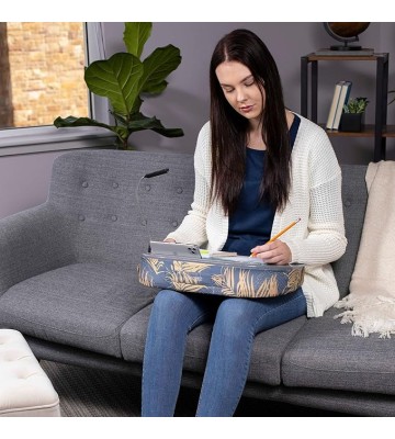 About this item Work on the couch, in the passenger seat, on a lounge chair Foam cushion provides comfort for those long work sessions Side sleeve to keep cords neat Carry anywhere with sturdy handle Dimensions: 23” L x 16” W x 2.5”H ..